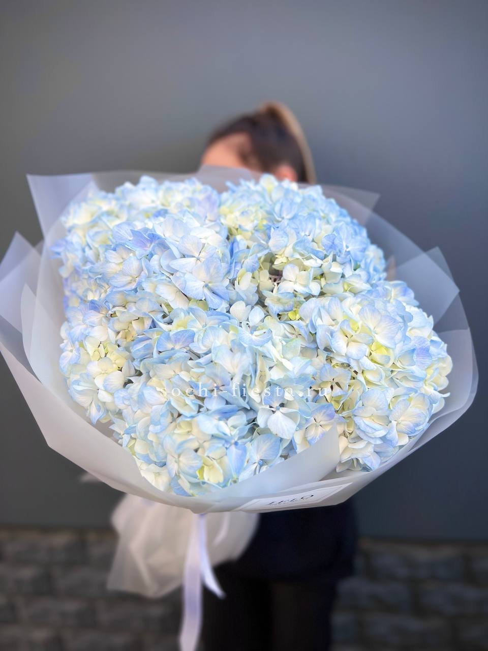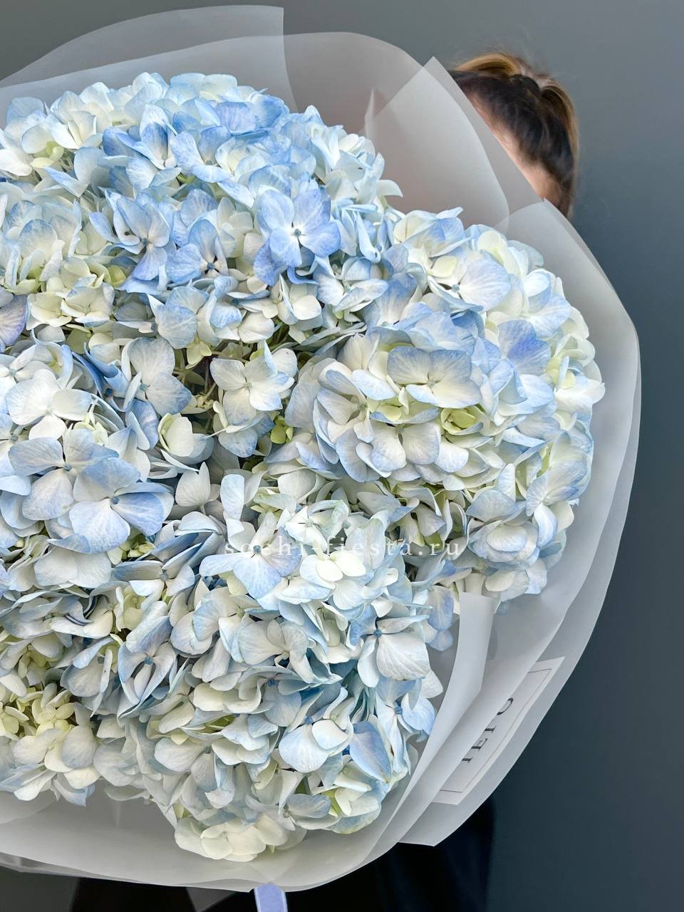 гортензия - 5 шт., лента, дизайнерская упаковка.