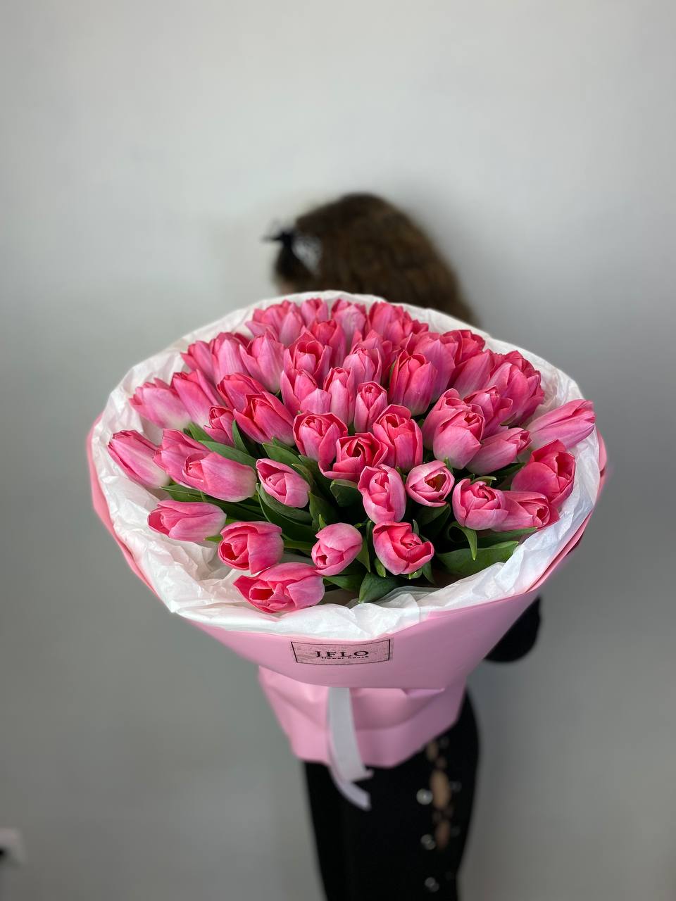 Букет из пятидесяти одного розового тюльпана держит форму благодаря плотной сборке и остается свежим долгое время. Практичное решение для тех, кто ценит естественную красоту без лишнего декора.