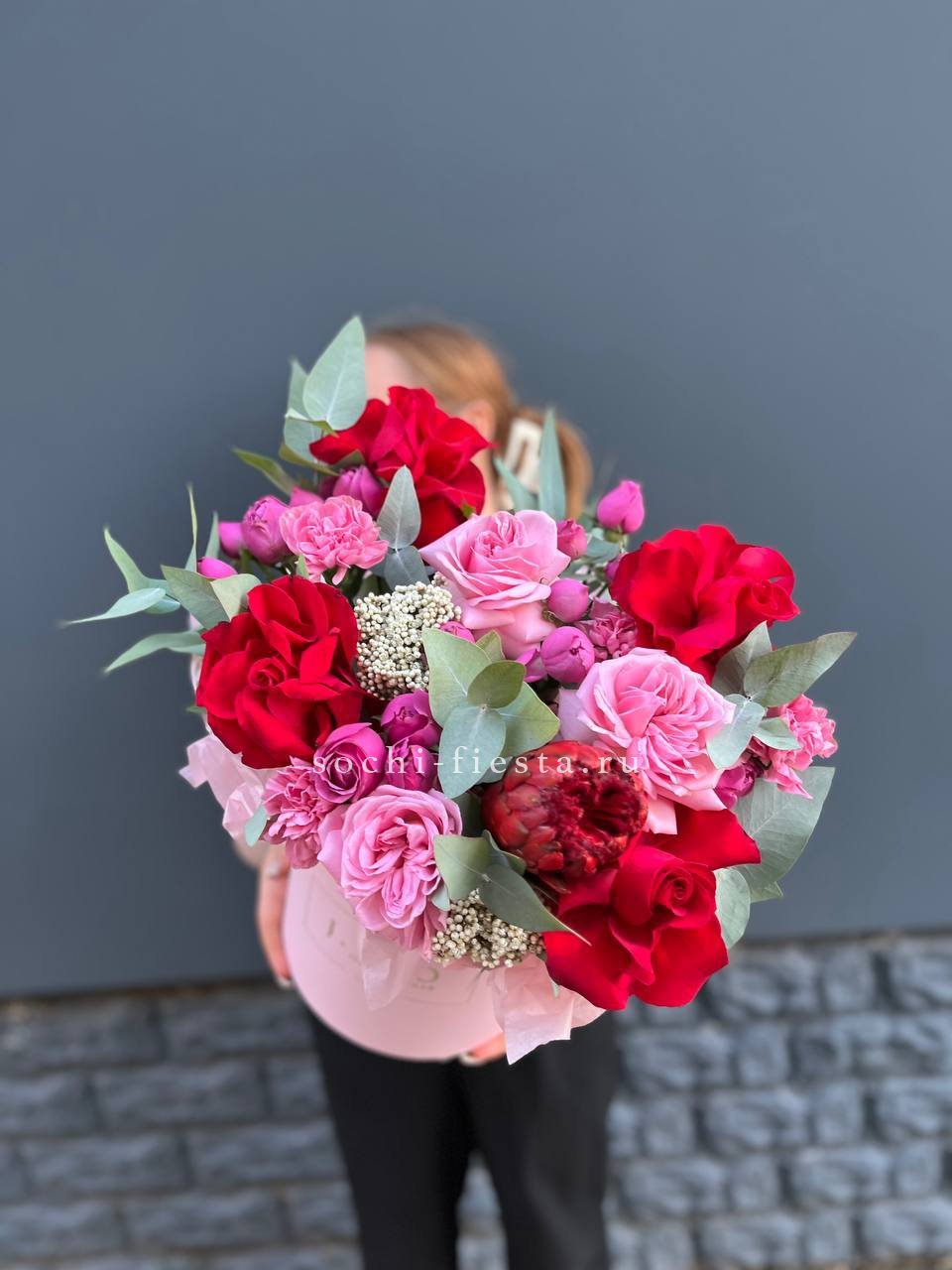 вывернутые розы, эвкалипт, лента, авторская упаковка.