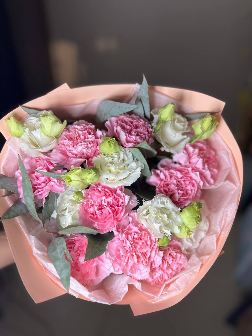 Для заказа товара "Букет гвоздик и эустом "Сири"" с доставкой в Нижневартовске нажмите в корзину