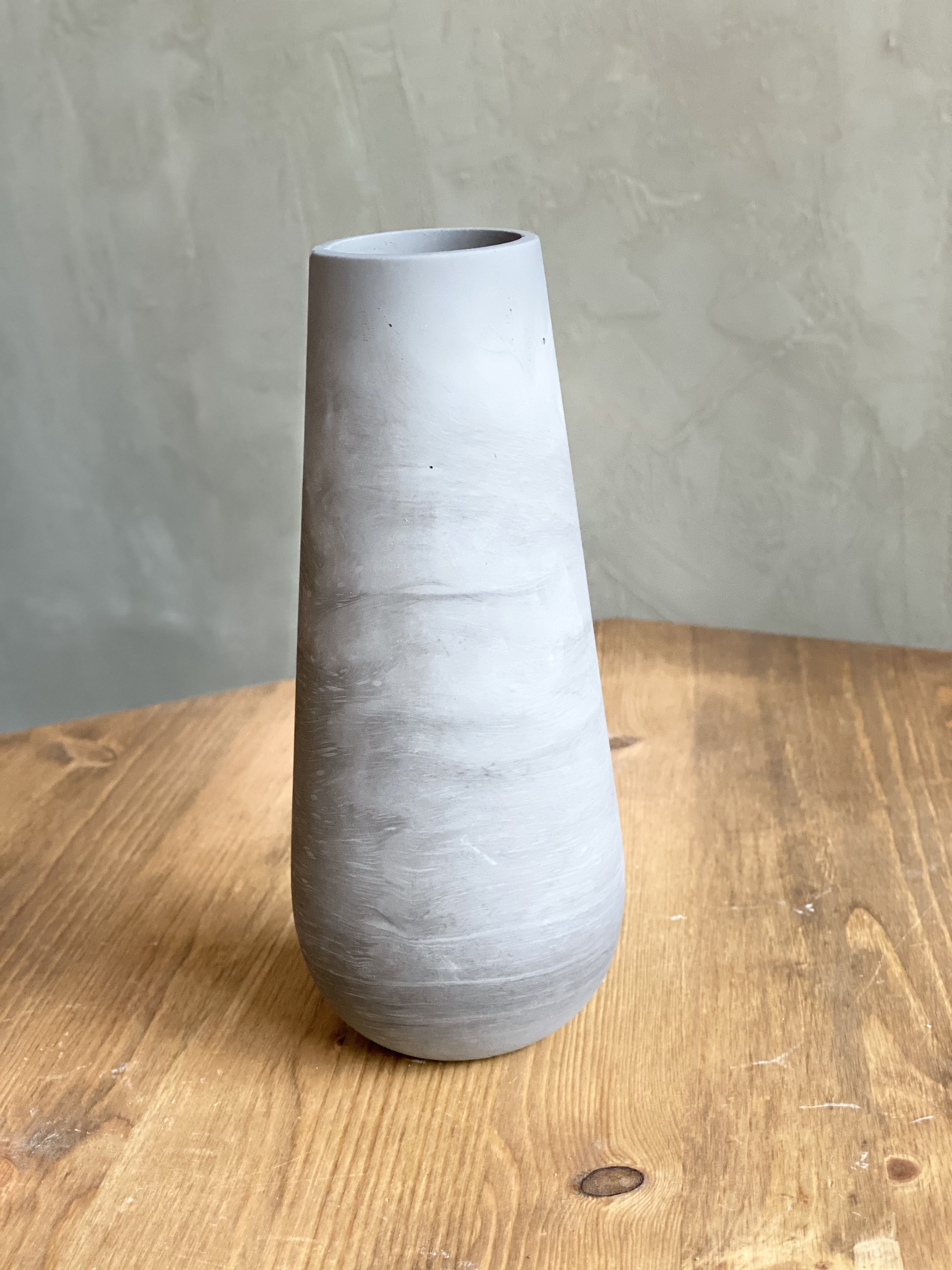Ваза из архитектурного бетона с матовой текстурой и строгими пропорциями. Её объём идеально подходит для сухоцветов и веток, создавая устойчивую композицию.