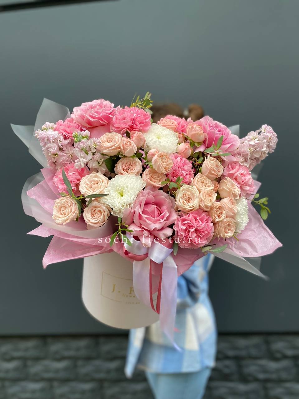 розы, альстромерии, хризантемы, диантусы, цилиндр D13,оазис, тишью.