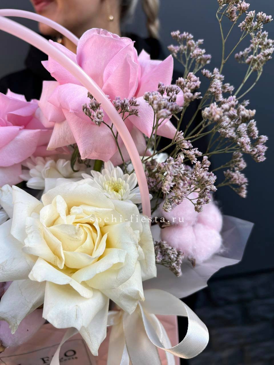 сумочка собранная в дуо цветовой гамме из нежных цветов.