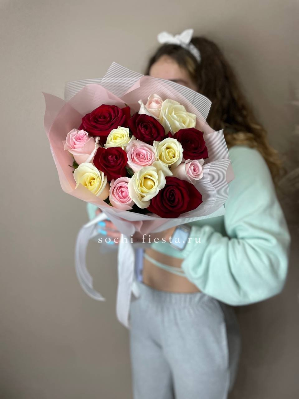 Мы работаем только со свежими цветами — букеты радуют от 7 до 14 дней и дольше при правильном уходе.