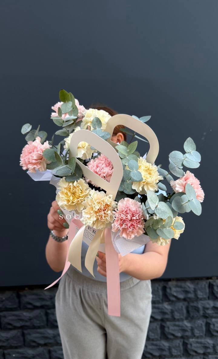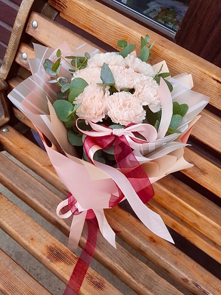 диантус - 21 шт., лента, крафт или дизайнерская пленка.