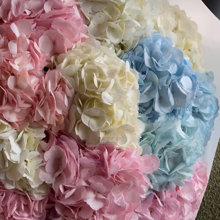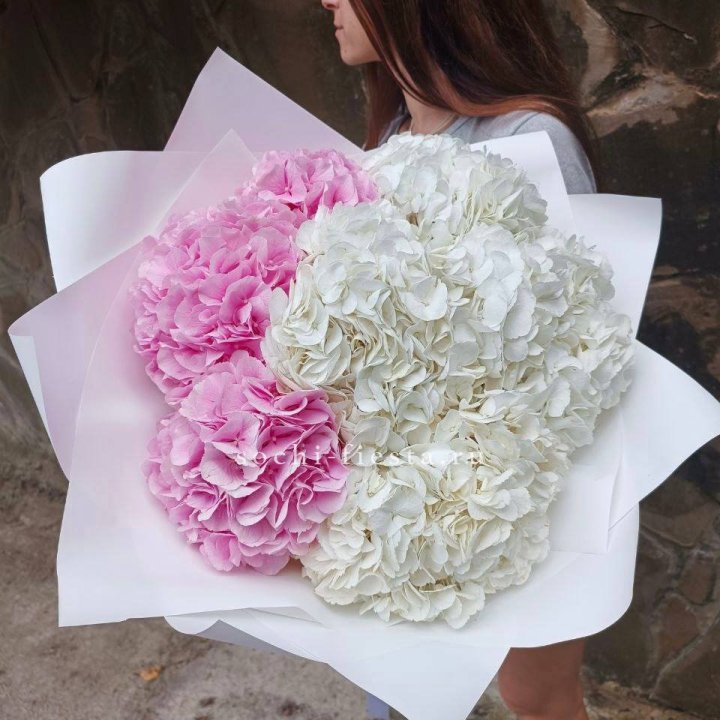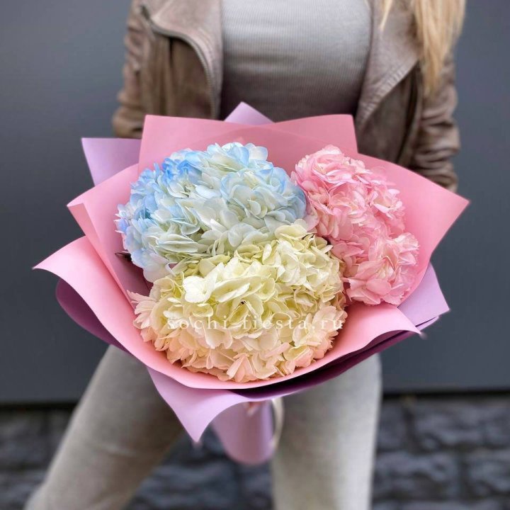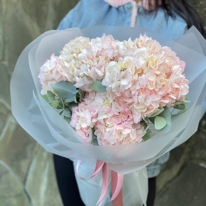 Гортензия — это декоративное кустарниковое растение, известное своими крупными, пышными соцветиями и богатой палитрой оттенков. Она широко используется во флористике благодаря своей эффектности и продолжительному цветению. Гортензия символизирует благодарность, искренность и гармонию. Ее крупные цветочные кисти делают ее популярным элементом композиций и букетов.