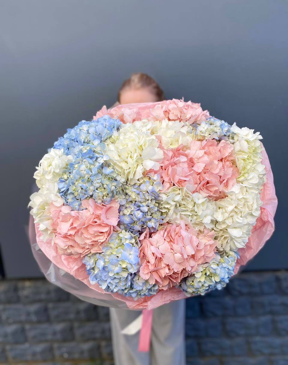 гортензия 15 шт., лента, дизайнерская упаковка.