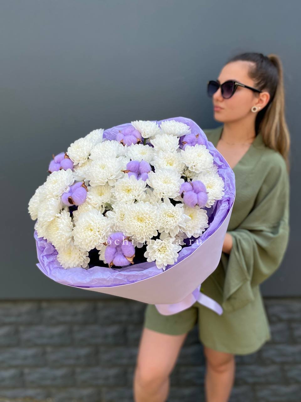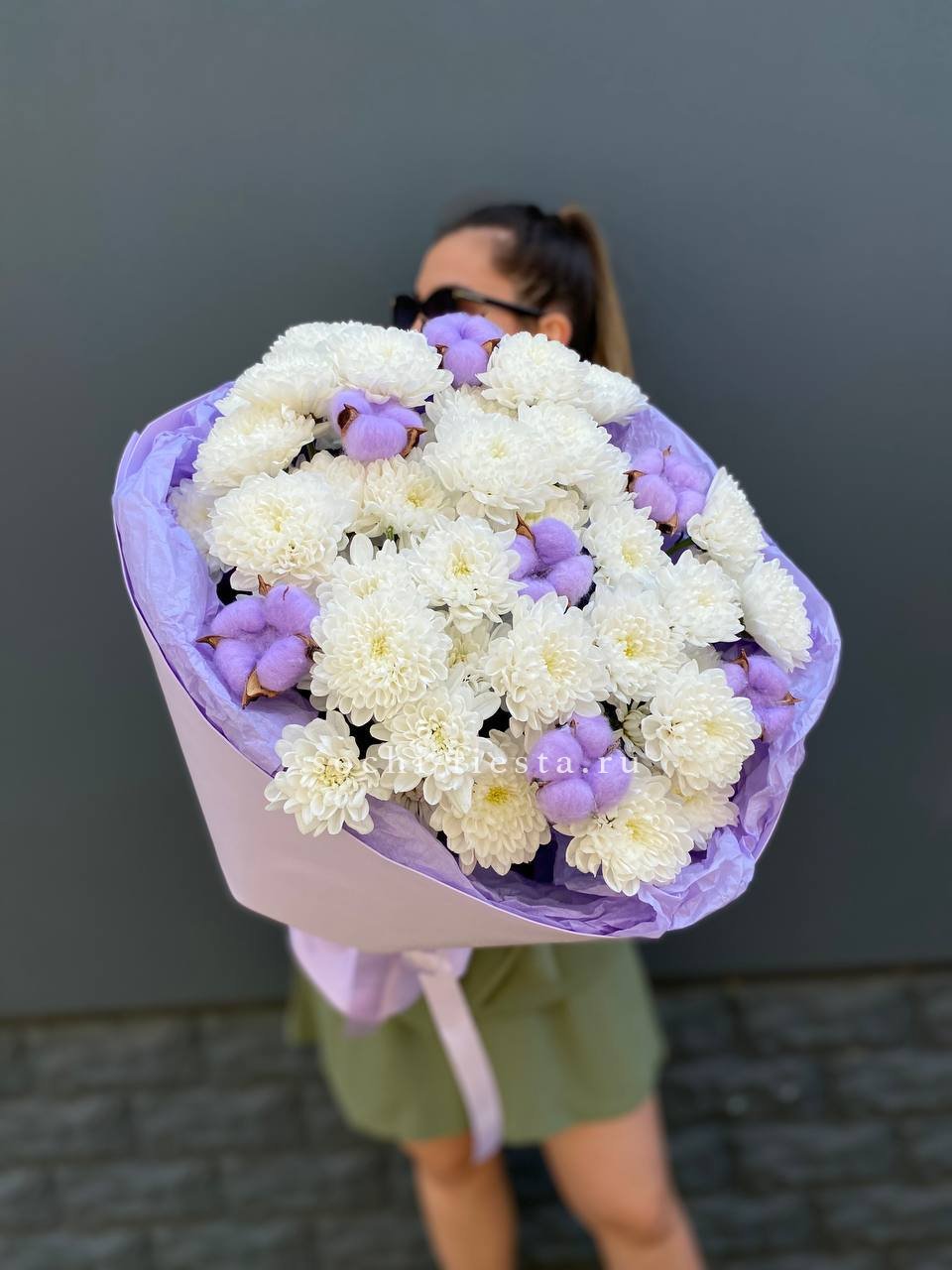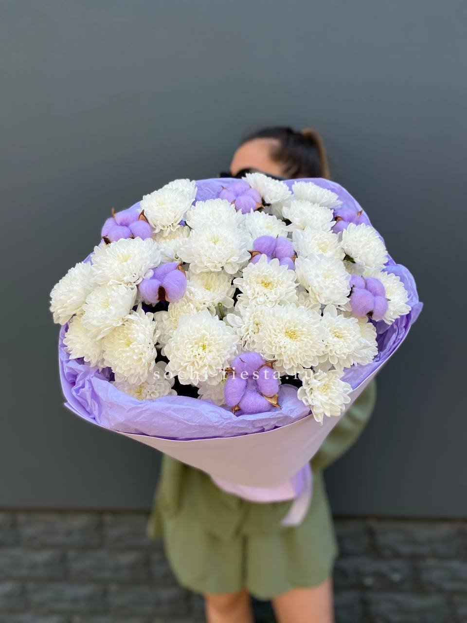 Для заказа товара " Букет хризантем и хлопка" с доставкой в Нижневартовске нажмите в корзину