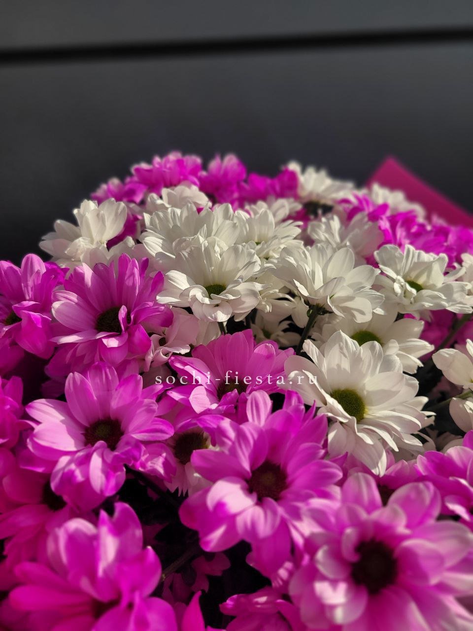 15-17 веток кустовых хризантем, фоамиран, дизайнерская пленка.