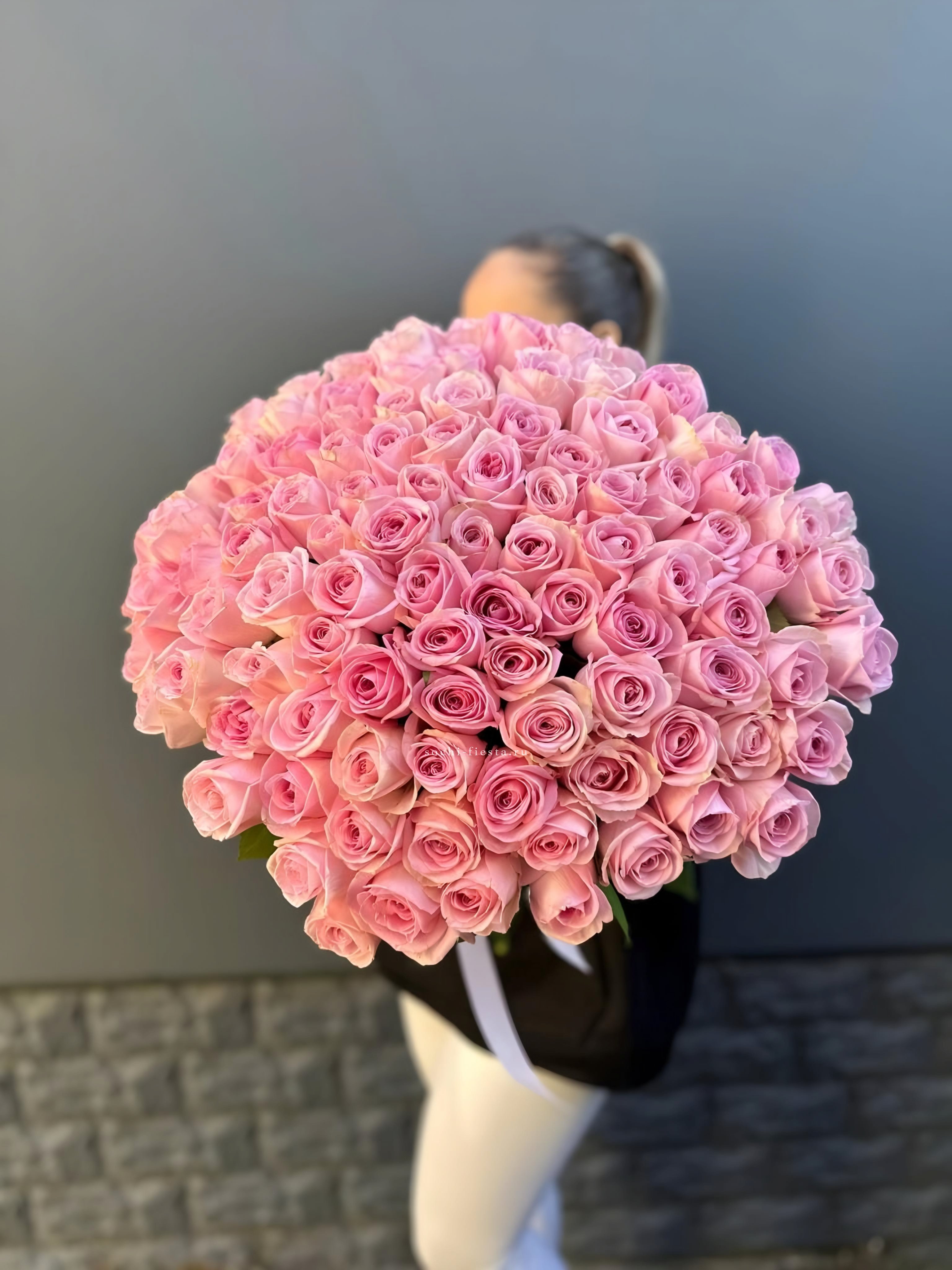 Сто один бутон собран в калейдоскоп оттенков — от персиковых до малиновых. Carousel наполняет пространство живой энергией и яркими переходами цвета.