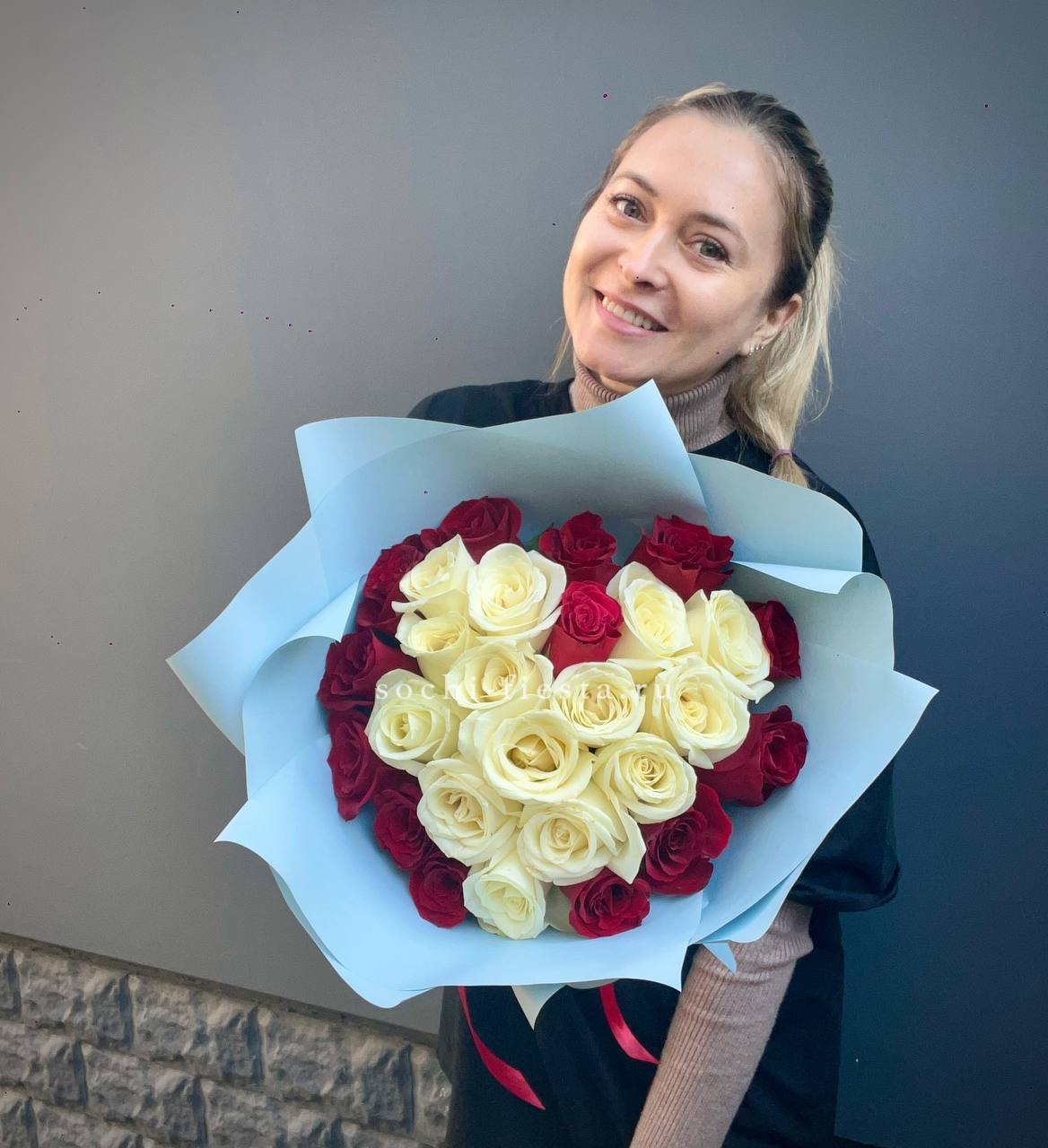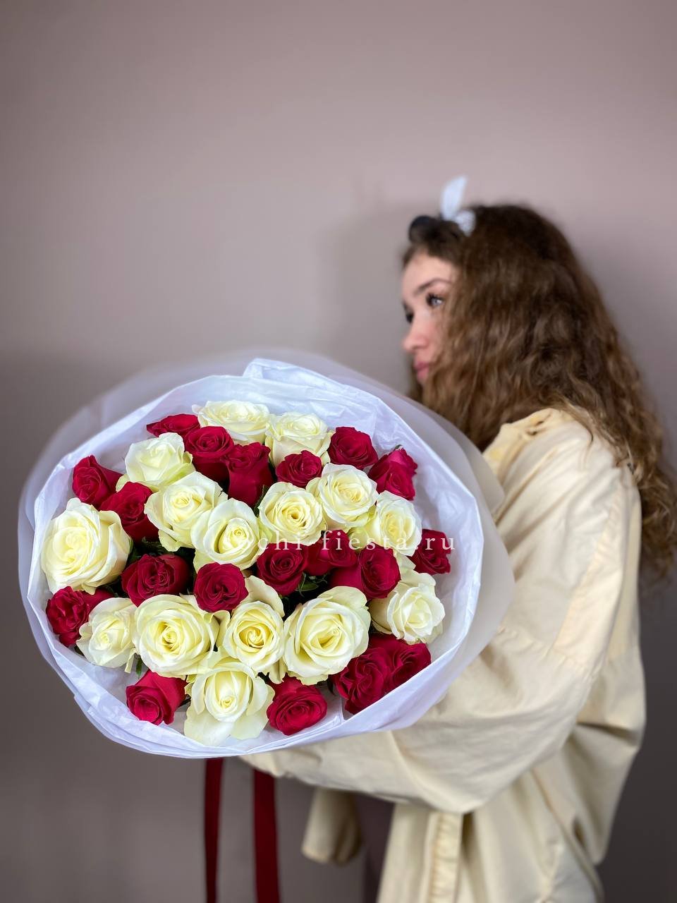 Для заказа товара "Букет из красных белых 35 роз" с доставкой в Нижневартовске нажмите в корзину