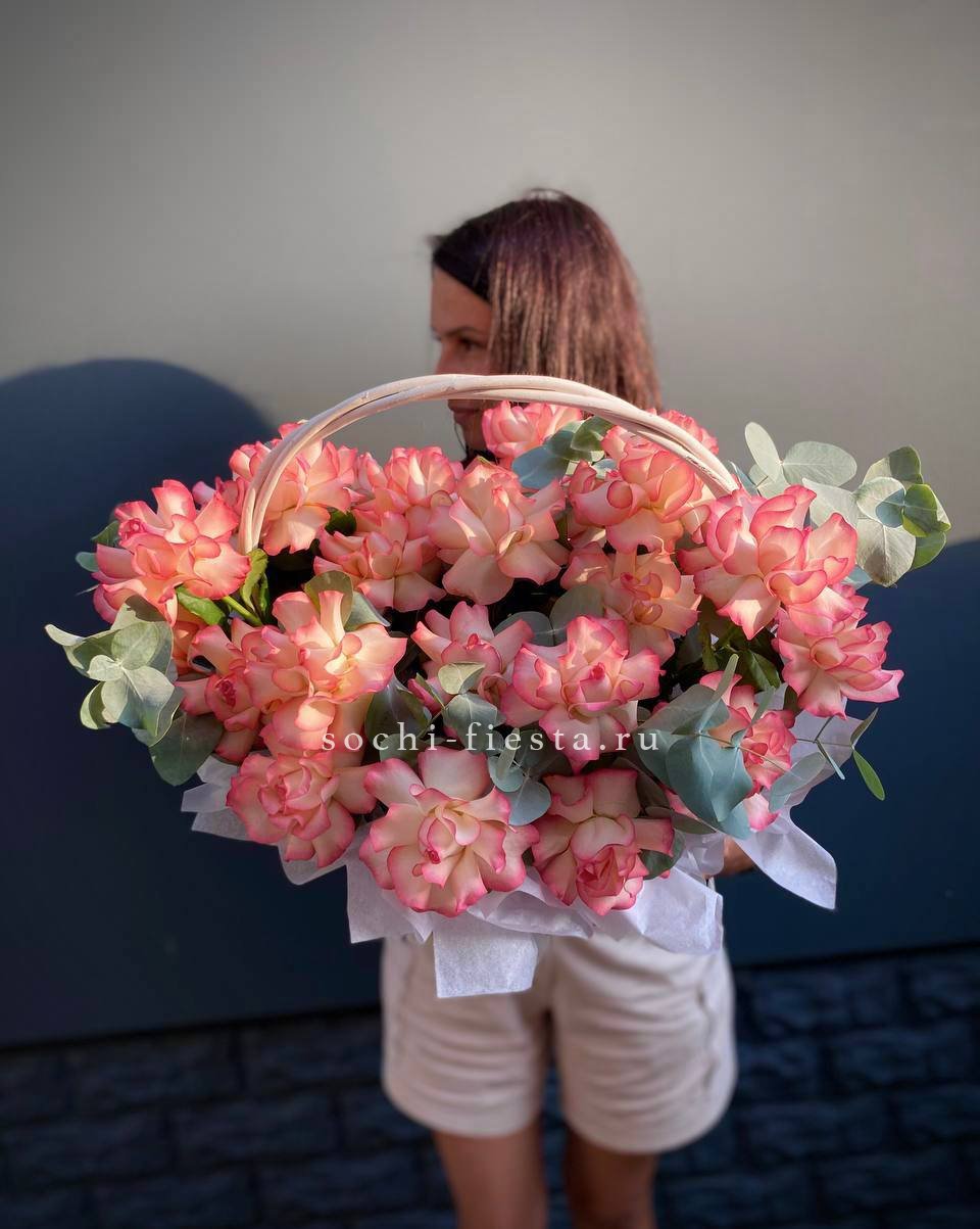 25 роз джумилия, корзина.