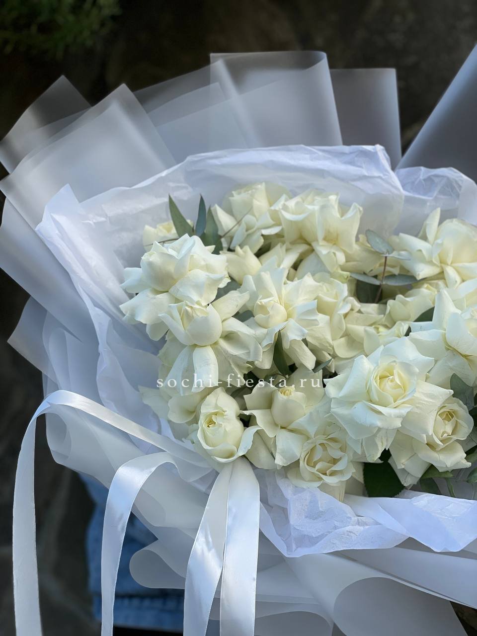 вывернутые розы, эвкалипт, лента, авторская упаковка.