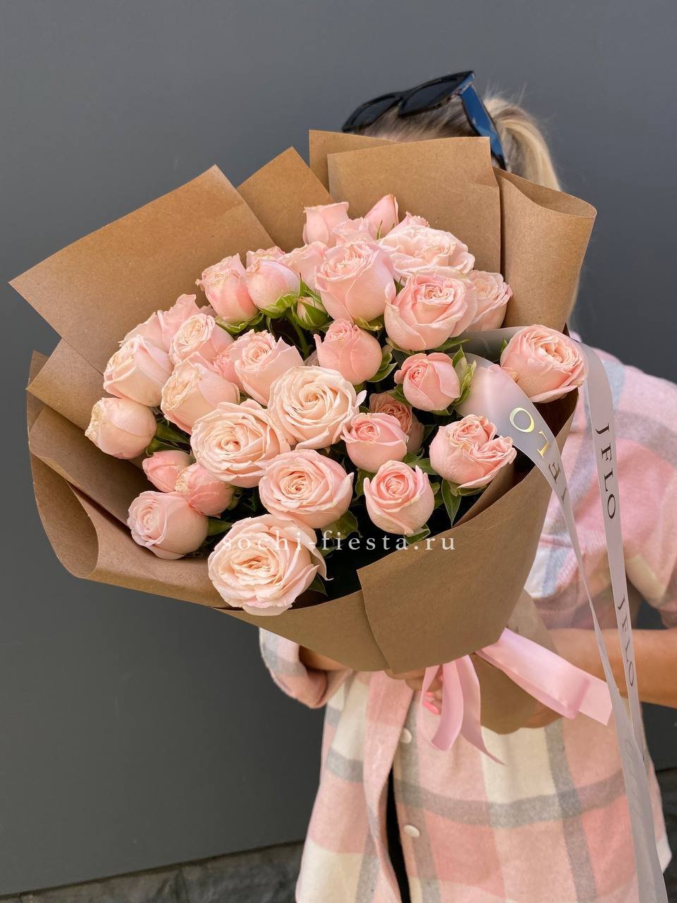 11 пионовидных роз Бомбастик, лента, авторская упаковка.